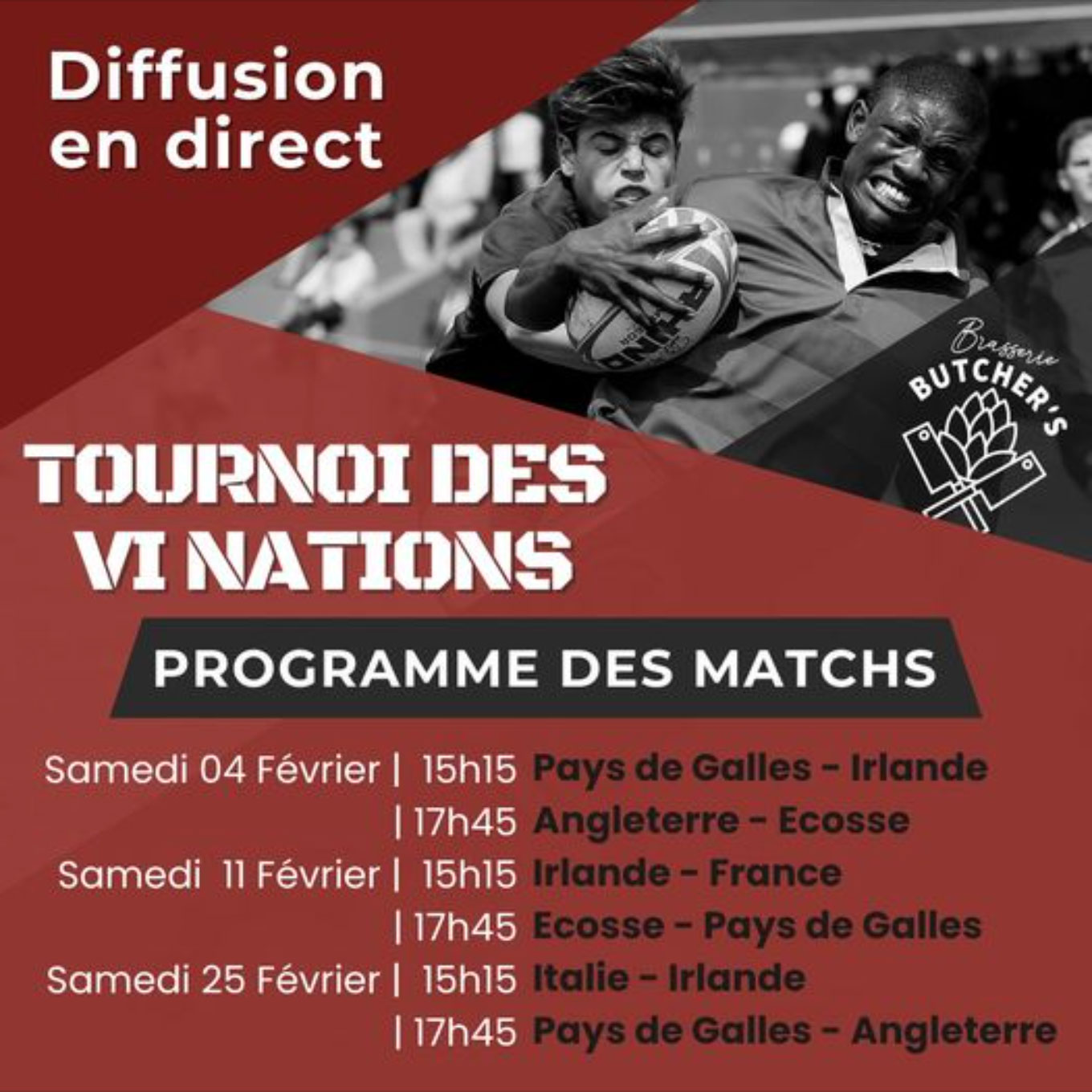 Your brewers love Rugby, which is why they have decided to broadcast the matches of the VI Nations 2023 tournament live at the Brasserie.